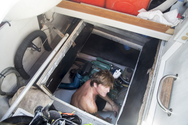 Et pourtant, d'un coup, la mer s'aplatît comme par enchantement et nous nous retrouvons à l'abri d'un récif de plus de 1 mile de large, immergé mais tout autant efficace. La fin de journée approche et nous apercevons au loin le mat d'un bateau… C'est Sofia, le bateau de l'affable Keith et son acolyte Lanny, retraite de l'armée de l'air américaine, double vétéran du Vietnam et haut en couleur. C'est eux les porteurs du bon plan.